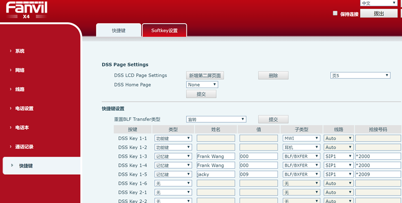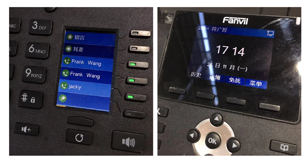 X4的主屏幕支持背景替换,这一设计可以搭配服务器来使用。一般用途有两种,一种是设置公司的文化背景LOGO或是一些和企业文化相关的图片。话机的第二屏幕可以设置一些快速拨号的应用。